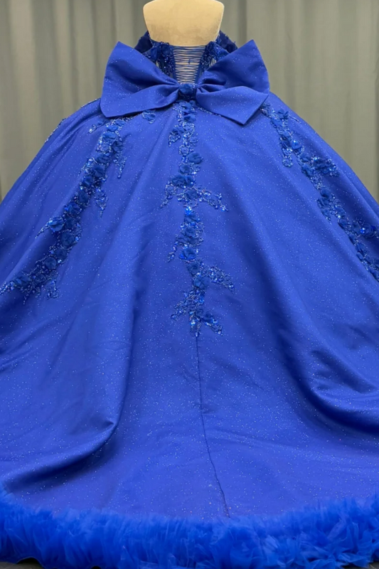 Off Shoulder Sleeveless Beaded Sequins Appliques Bow Knots Royal Blue Quinceanera Dress WQ1444