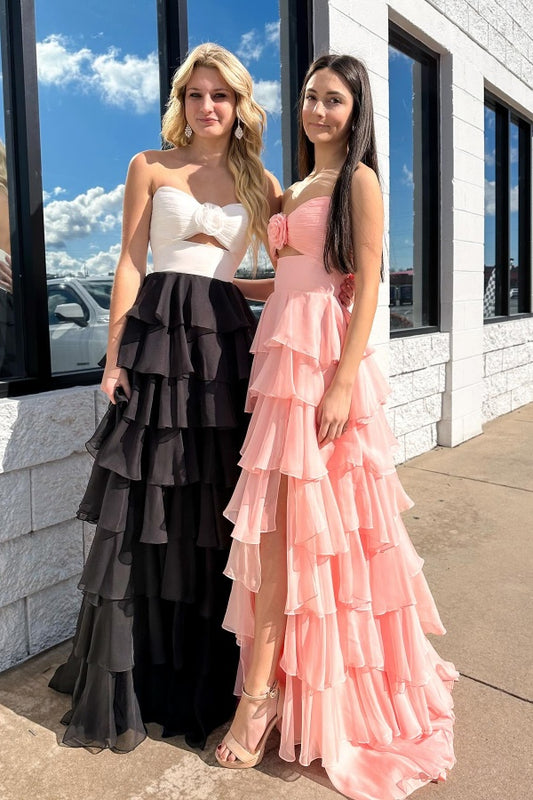 A-Line Strapless Chiffon Tiered Prom Dress WU1042