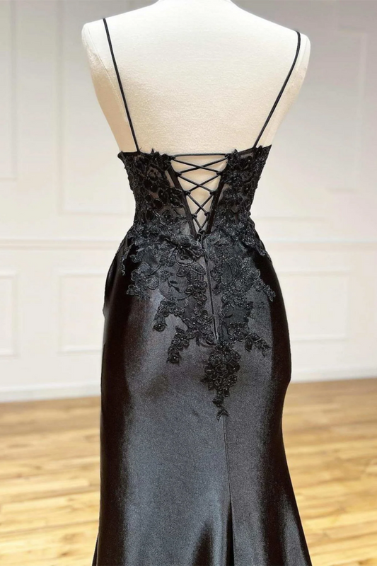 Sweetheart Spaghetti Straps Sequins Lace Appliques High Side Slit and Train Prom Dress WU1242