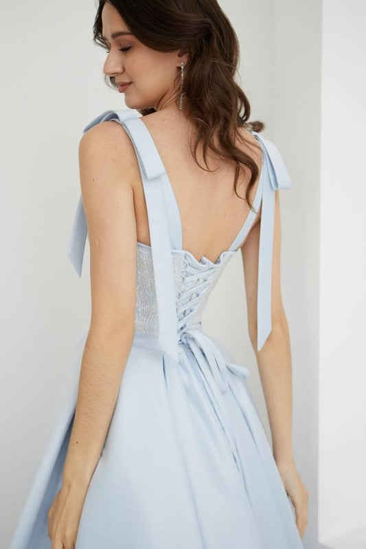A-Line Square Neck Straps Sleeveless Bow Knot Polka Dots Prom Dress WU1565