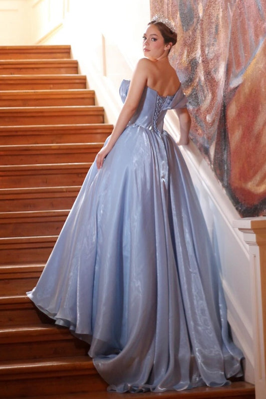 A-Line Strapless Sleeveless Pleated Beaded Prom Dress WU1567