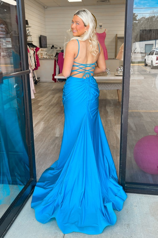 Mermaid Strapless Spaghetti Straps Criss Cross Straps Satin Prom Dress WU1117