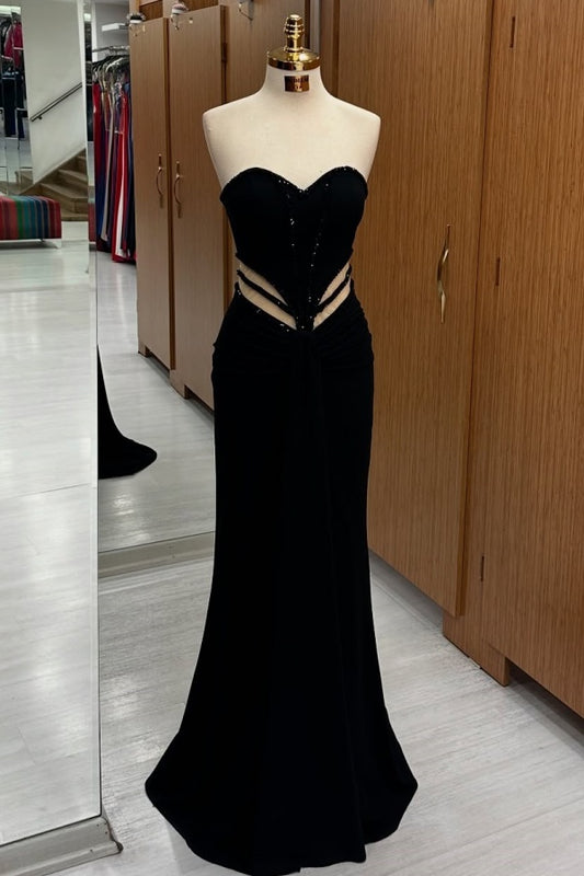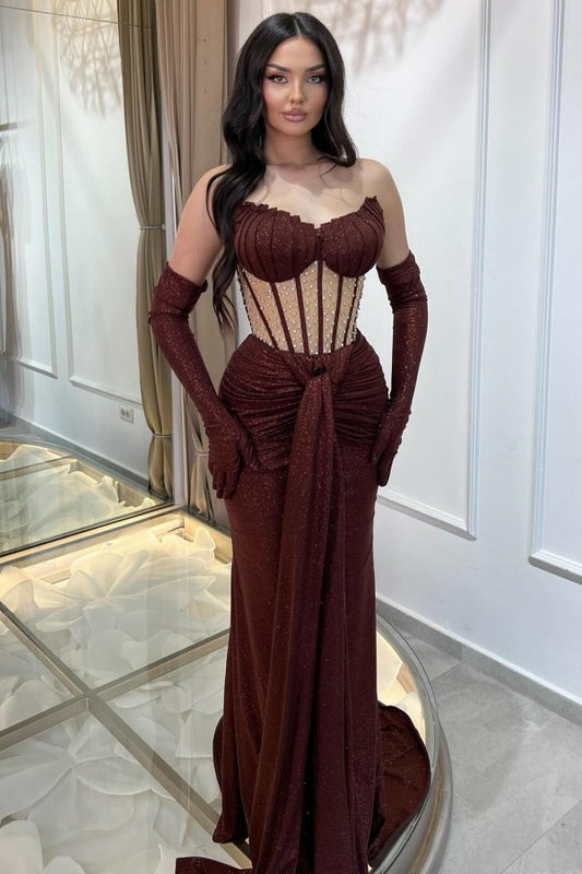 WU1130 - Wunderschönes schulterfreies ärmelloses Ball- und Partykleid mit Pailletten, hohem Seitenschlitz und Schleppe, Abendkleid, Cocktailkleid