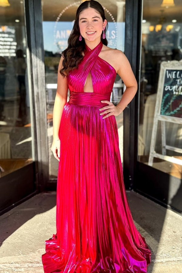 Setzen Sie ein Statement mit diesem eleganten A-Linien-Plissee-Kleid WU1097, das sich perfekt für jeden besonderen Anlass eignet. Der Neckholder-Ausschnitt und das ärmellose Design verleihen einen Hauch von Eleganz, während der offene Rücken und der hohe Seitenschlitz für einen modernen Twist sorgen. Dieses Kleid ist die perfekte Kombination aus Schlichtheit und dennoch Chic und ist Ihr Favorit für Hochzeiten, Partys und mehr.