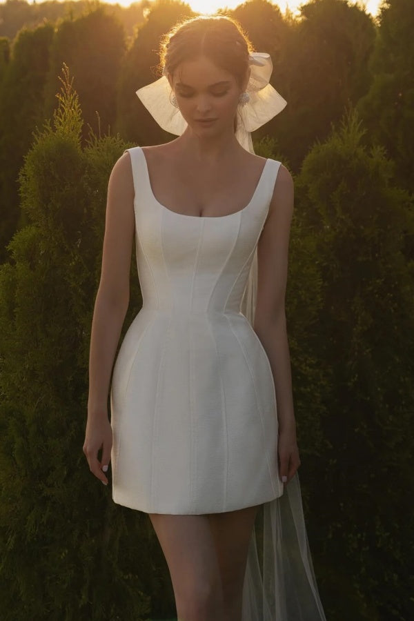Verschönern Sie Ihren Brautlook mit dem Hochzeitskleid WW1010. Die elegante A-Linien-Silhouette, der schulterfreie Ausschnitt und das ärmellose Design sorgen für einen zeitlosen und eleganten Look. Der plissierte Satinstoff verleiht einen Hauch von Luxus, während der hohe Seitenschlitz und die Schleppe einen modernen Touch verleihen. Vervollständigen Sie Ihren Look mit dem wunderschönen Schleifendetail.