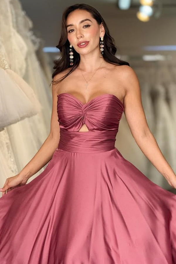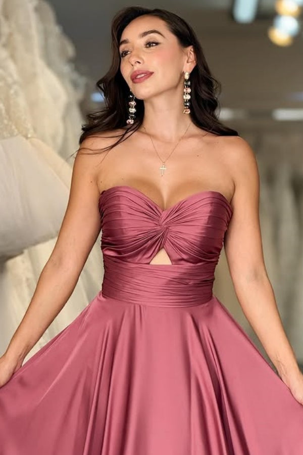 WU1103 - Elegantes und schlichtes A-Linien-Kleid, trägerlos, ärmellos, Ballkleid, Partykleid, plissiert, bodenlang, Abendkleid, formelle Kleidung für Hochzeitsgäste