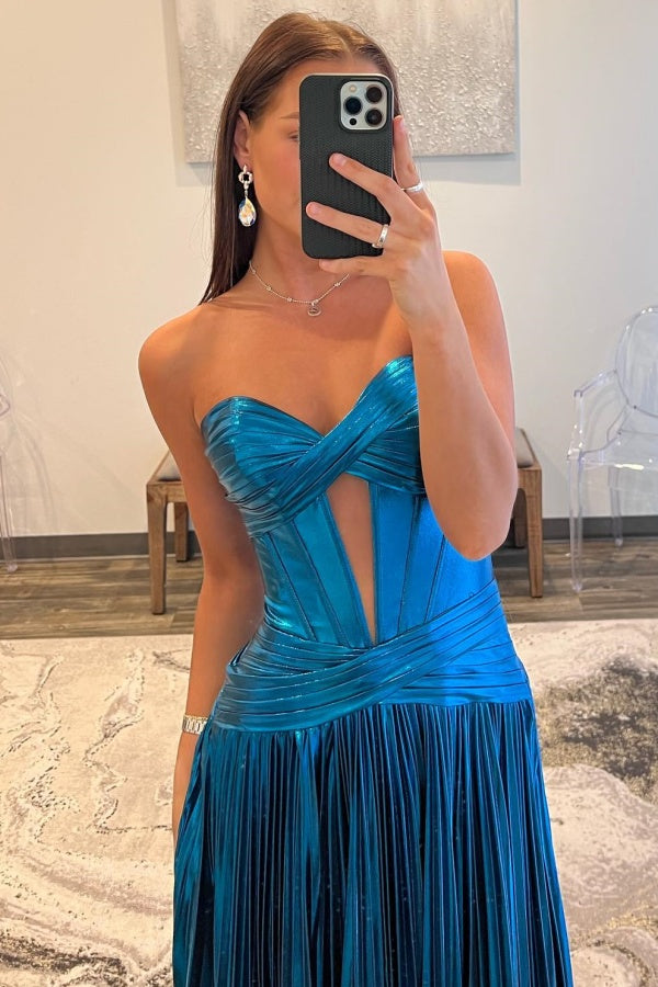 Machen Sie sich bereit, in dem atemberaubenden, plissierten Ballkleid WU1116 alle Blicke auf sich zu ziehen! Mit seinem eleganten A-Linien-Design ist dieses trägerlose und ärmellose Kleid perfekt für jeden formellen Anlass. Die bodenlange Silhouette und der hohe Seitenschlitz verleihen einen Hauch von Eleganz und lassen Sie aus der Menge hervorstechen. Perfekt für Bälle, Partys und Abende in der Stadt.