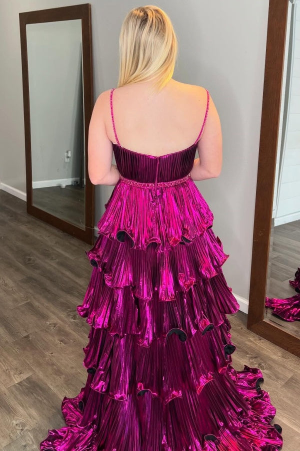 WU1130 - Wunderschönes schulterfreies ärmelloses Ball- und Partykleid mit Pailletten, hohem Seitenschlitz und Schleppe, Abendkleid, Cocktailkleid