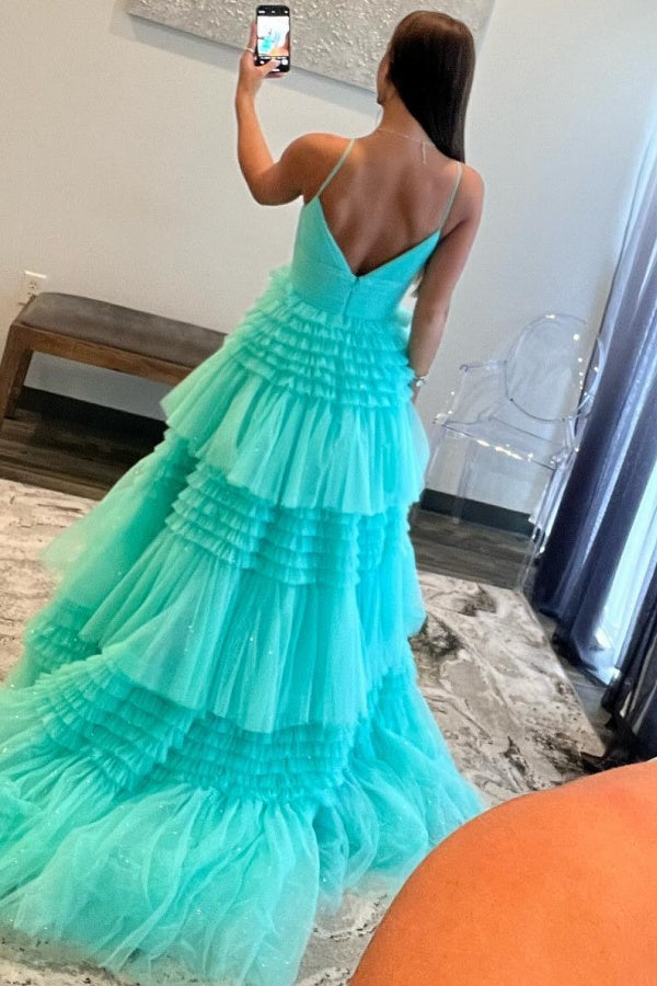 WU1130 - Wunderschönes schulterfreies ärmelloses Ball- und Partykleid mit Pailletten, hohem Seitenschlitz und Schleppe, Abendkleid, Cocktailkleid