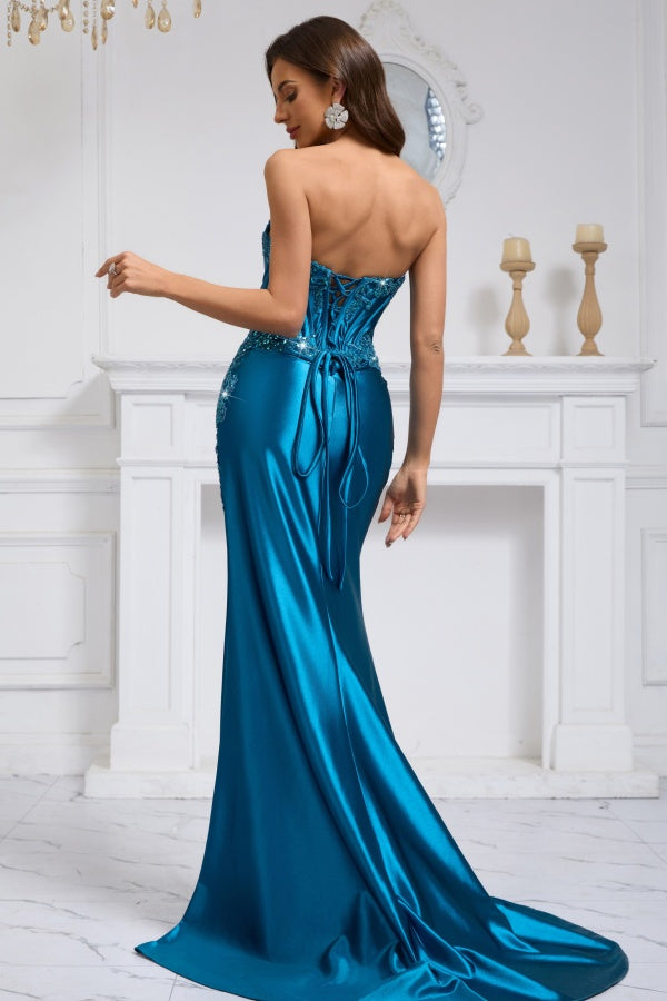 WU1130 - Wunderschönes schulterfreies ärmelloses Ball- und Partykleid mit Pailletten, hohem Seitenschlitz und Schleppe, Abendkleid, Cocktailkleid