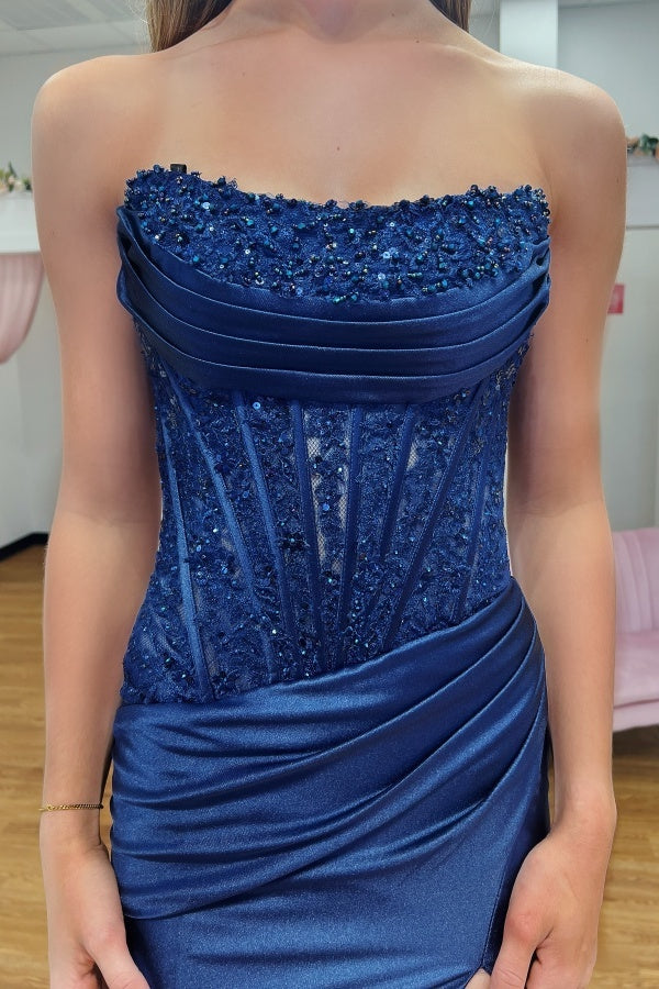 WU1130 - Wunderschönes schulterfreies ärmelloses Ball- und Partykleid mit Pailletten, hohem Seitenschlitz und Schleppe, Abendkleid, Cocktailkleid