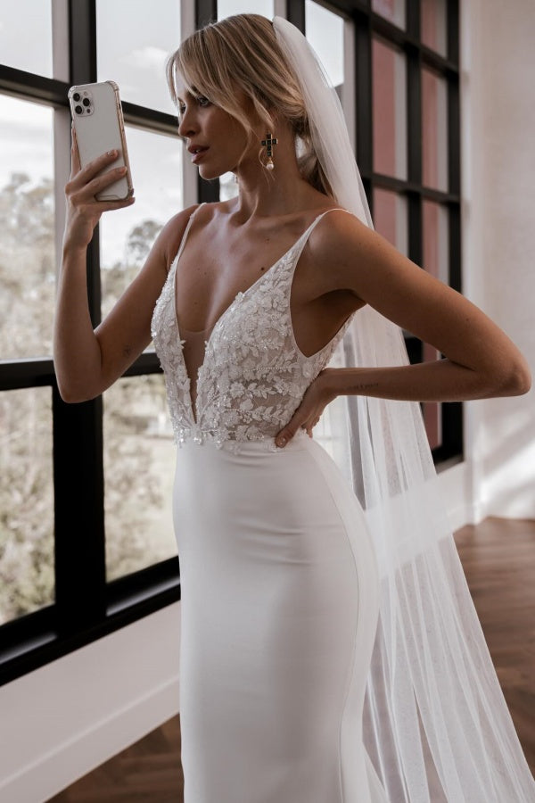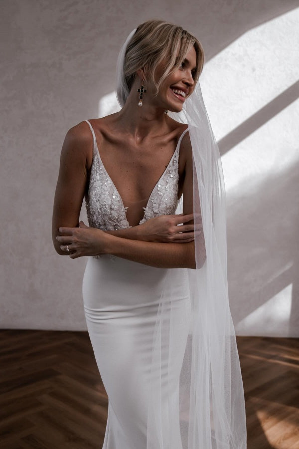 Verschönern Sie Ihren Brautlook mit dem Hochzeitskleid WW1010. Die elegante A-Linien-Silhouette, der schulterfreie Ausschnitt und das ärmellose Design sorgen für einen zeitlosen und eleganten Look. Der plissierte Satinstoff verleiht einen Hauch von Luxus, während der hohe Seitenschlitz und die Schleppe einen modernen Touch verleihen. Vervollständigen Sie Ihren Look mit dem wunderschönen Schleifendetail.