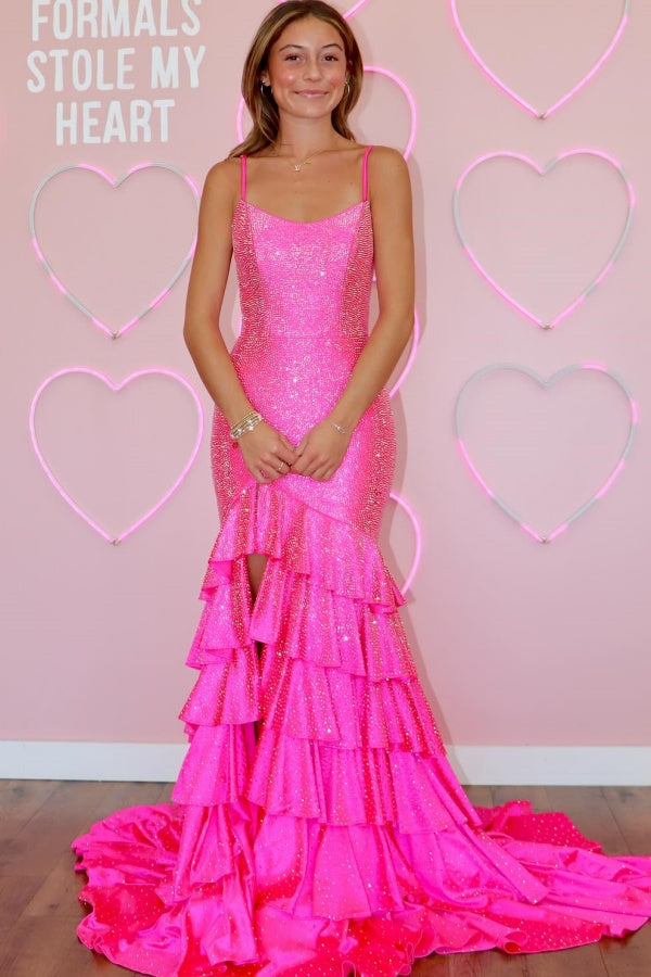 WU1130 - Wunderschönes schulterfreies ärmelloses Ball- und Partykleid mit Pailletten, hohem Seitenschlitz und Schleppe, Abendkleid, Cocktailkleid