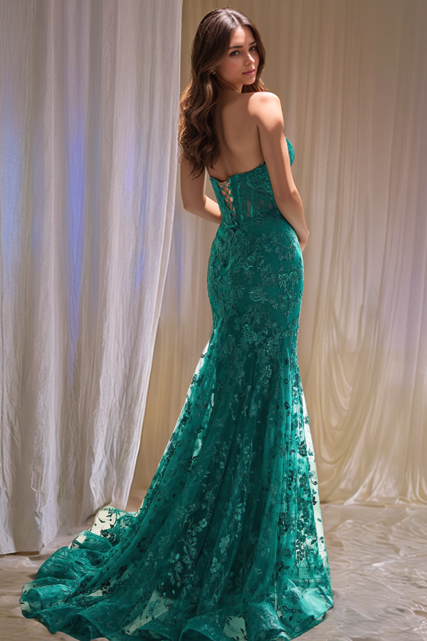 WU1130 - Wunderschönes schulterfreies ärmelloses Ball- und Partykleid mit Pailletten, hohem Seitenschlitz und Schleppe, Abendkleid, Cocktailkleid