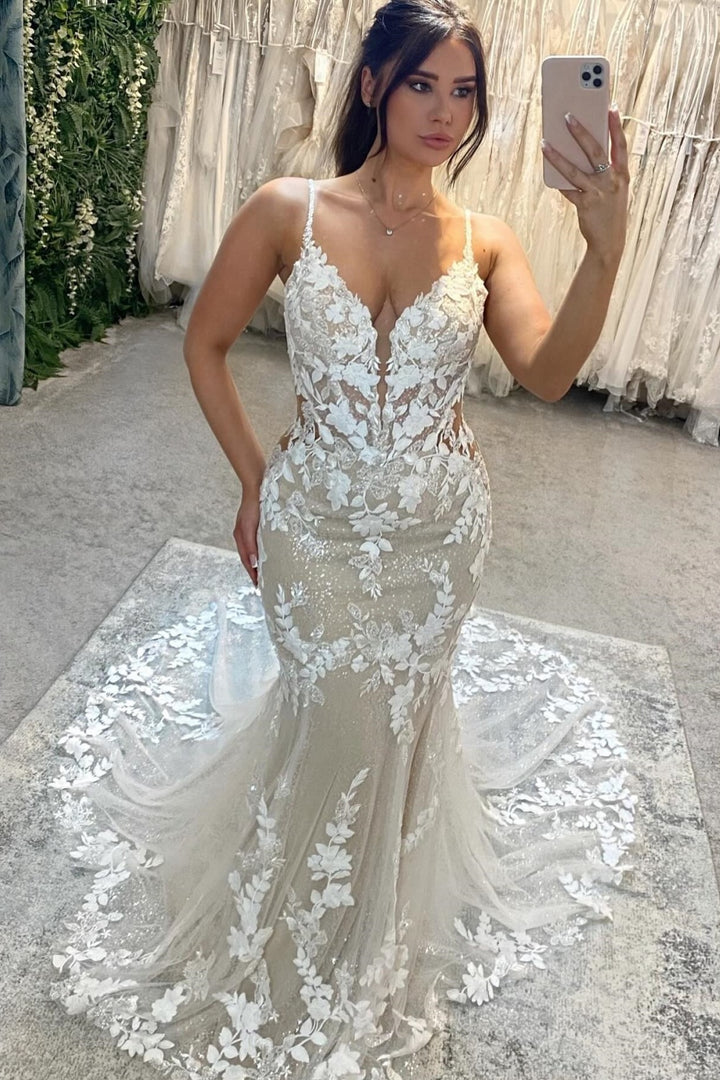 WW1010 - Elegantes und hinreißendes A-Linien-Brautkleid aus schulterfreiem, ärmellosem, plissiertem Satin mit hohem Seitenschlitz und Hofschleppe