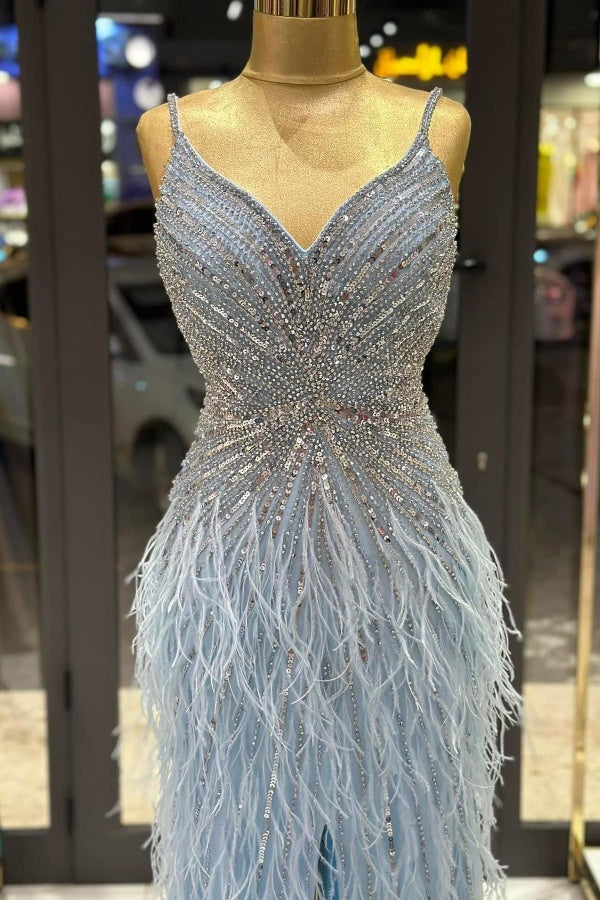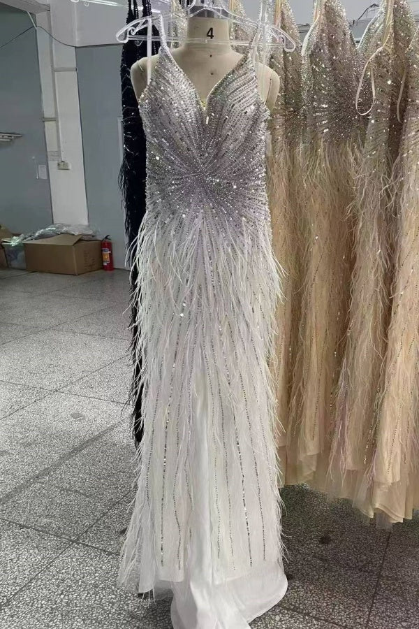 WU1130 - Wunderschönes schulterfreies ärmelloses Ball- und Partykleid mit Pailletten, hohem Seitenschlitz und Schleppe, Abendkleid, Cocktailkleid