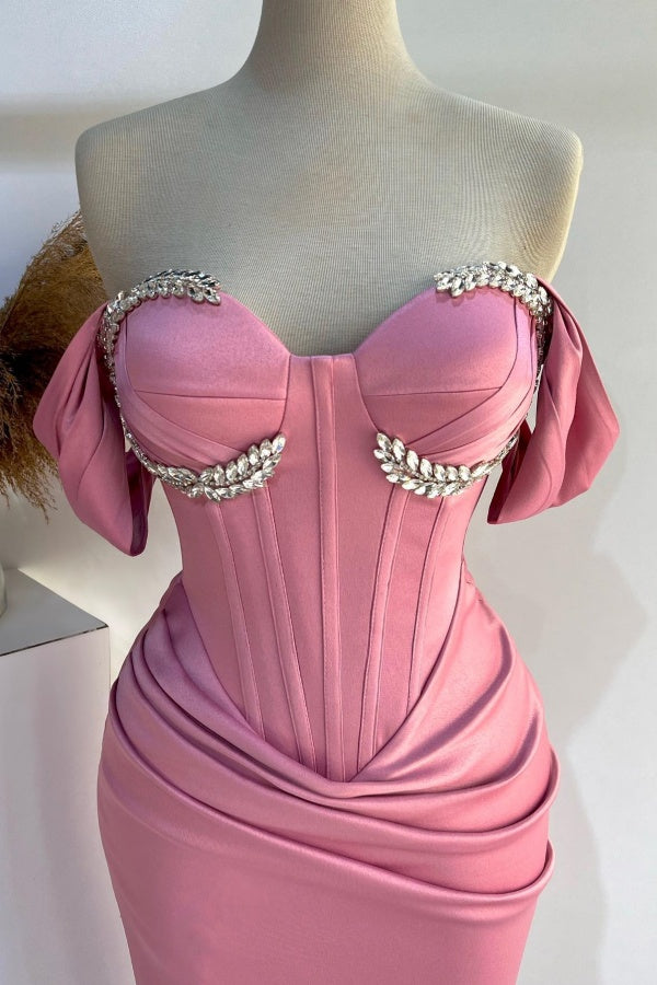 WU1130 - Wunderschönes schulterfreies ärmelloses Ball- und Partykleid mit Pailletten, hohem Seitenschlitz und Schleppe, Abendkleid, Cocktailkleid