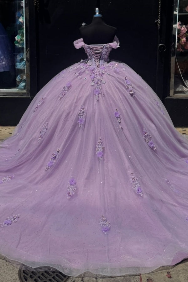 Langes Quinceanera-Kleid mit Herzausschnitt für Damen, trägerloses Korsett mit Blumenapplikationen, Perlenbesetztes Tüll-Ballkleid