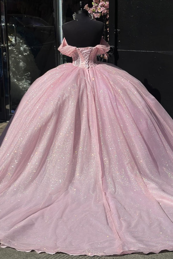 Langes Quinceanera-Kleid mit Herzausschnitt für Damen, trägerloses Korsett mit Blumenapplikationen, Perlenbesetztes Tüll-Ballkleid