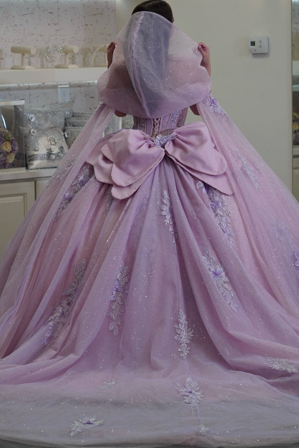 Langes Quinceanera-Kleid mit Herzausschnitt für Damen, trägerloses Korsett mit Blumenapplikationen, Perlenbesetztes Tüll-Ballkleid