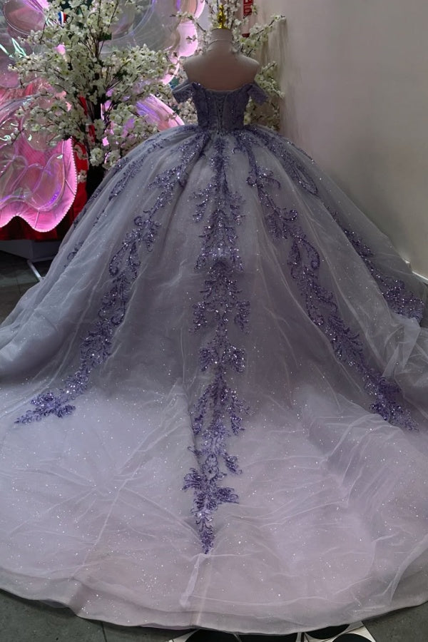 Langes Quinceanera-Kleid mit Herzausschnitt für Damen, trägerloses Korsett mit Blumenapplikationen, Perlenbesetztes Tüll-Ballkleid
