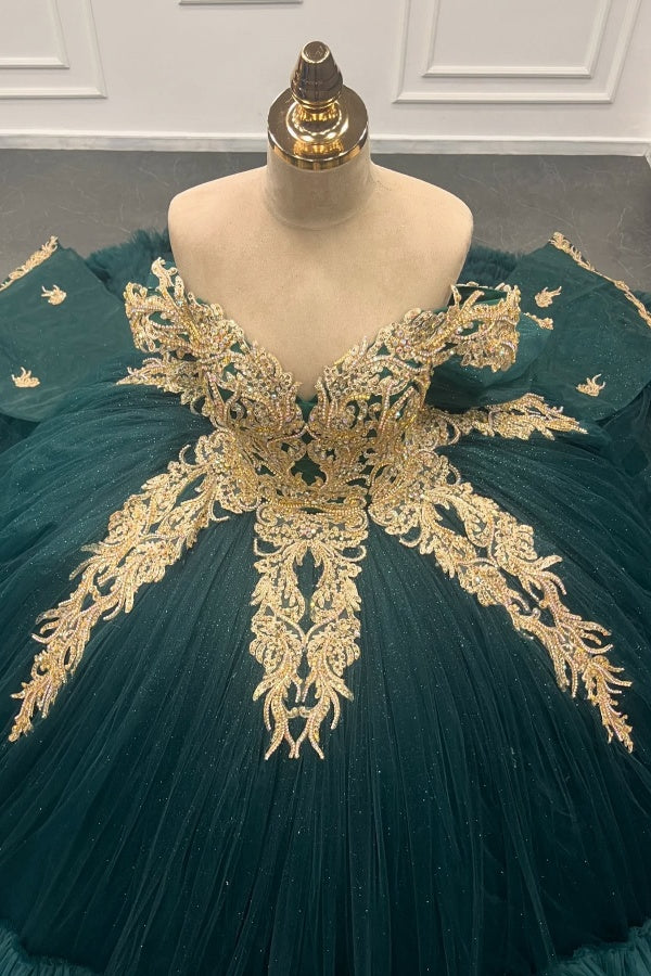 Langes Quinceanera-Kleid mit Herzausschnitt für Damen, trägerloses Korsett mit Blumenapplikationen, Perlenbesetztes Tüll-Ballkleid