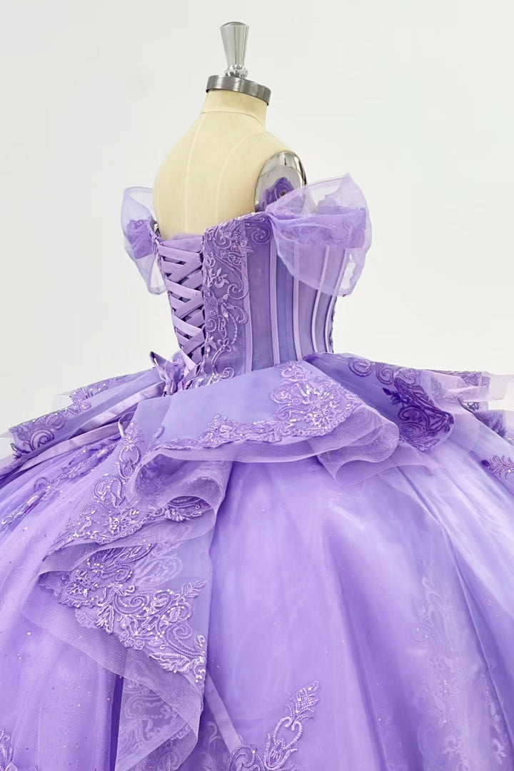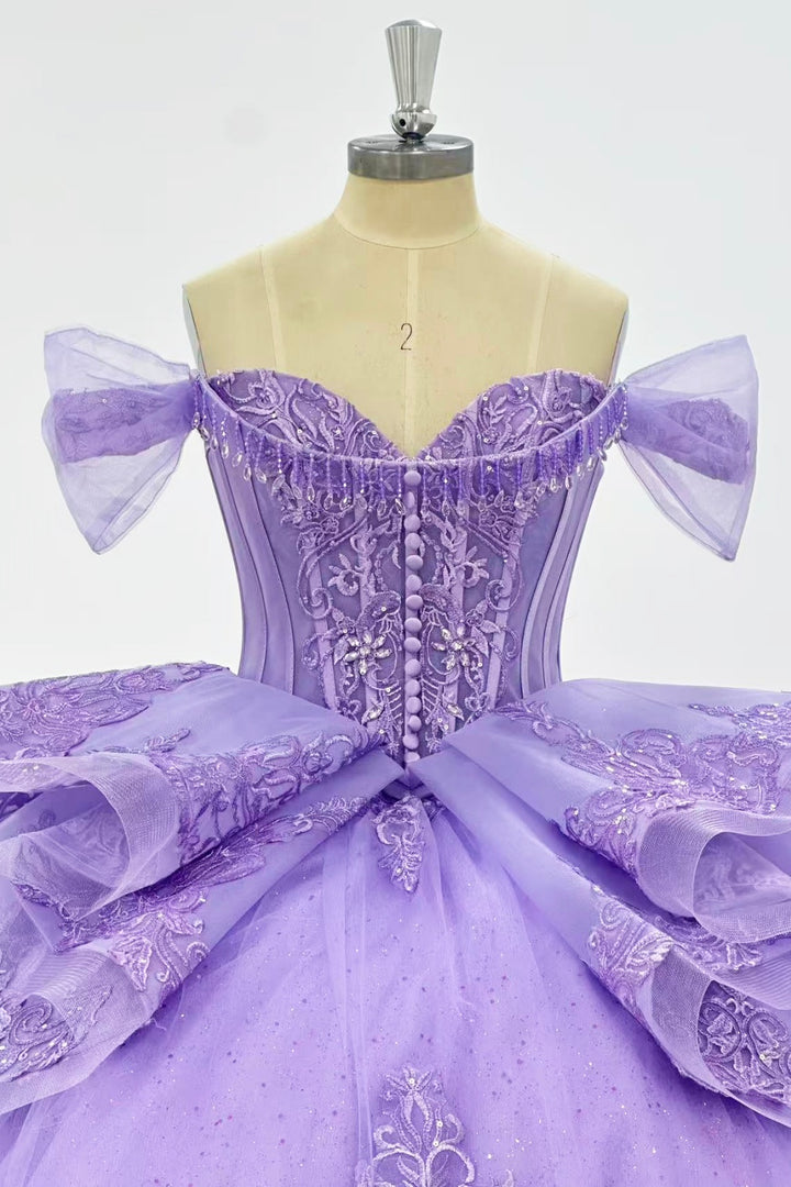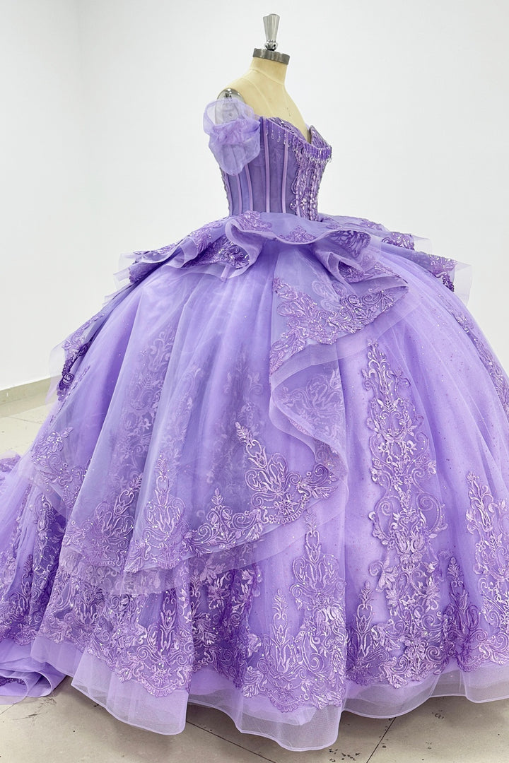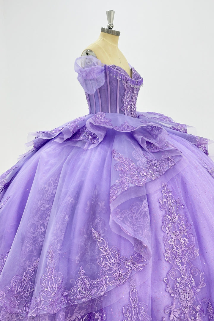 Off Shoulder Sleeveless Two Piece Beaded Sequins Appliques Ruffles Lilac Sweet 15 Quinceañera Dress WQ1762