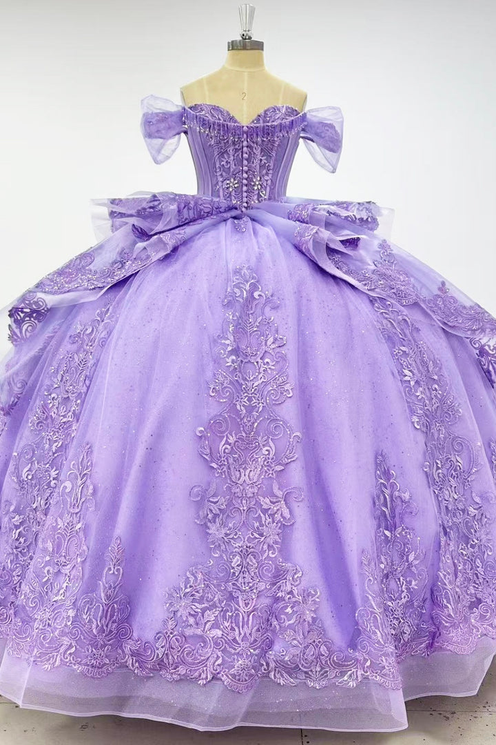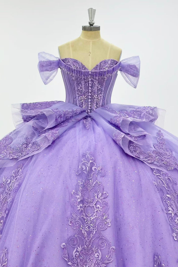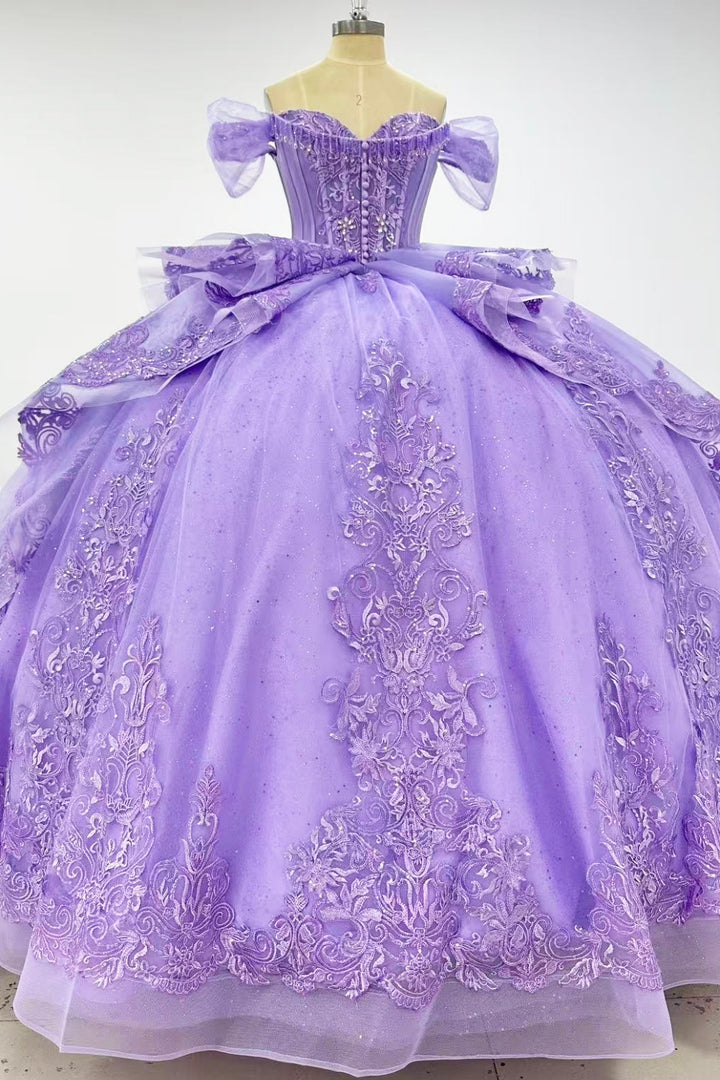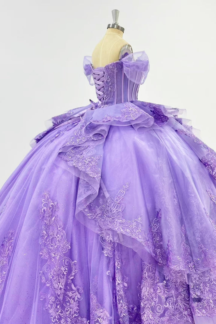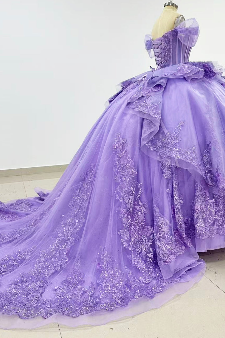 Off Shoulder Sleeveless Two Piece Beaded Sequins Appliques Ruffles Lilac Sweet 15 Quinceañera Dress WQ1762