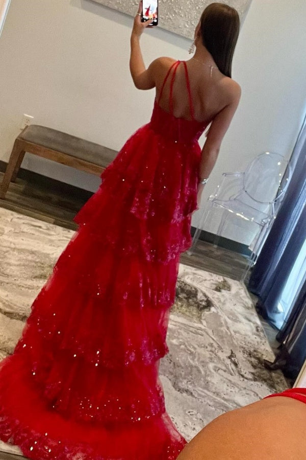 WU1130 - Wunderschönes schulterfreies ärmelloses Ball- und Partykleid mit Pailletten, hohem Seitenschlitz und Schleppe, Abendkleid, Cocktailkleid