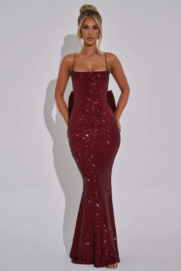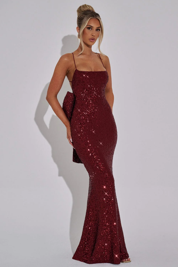 Dieses sexy und heiße Meerjungfrauenkleid ist fachmännisch aus Paillettenstoff gefertigt und verfügt über quadratische Spaghettiträger und einen offenen Rücken. Dieses Kleid ist perfekt für jeden besonderen Anlass und wird mit seiner Bodenlänge und dem eleganten Schleifenknotendetail alle Blicke auf sich ziehen. Setzen Sie mit diesem atemberaubenden Kleid bei Ihrer nächsten Abendparty ein Statement.
