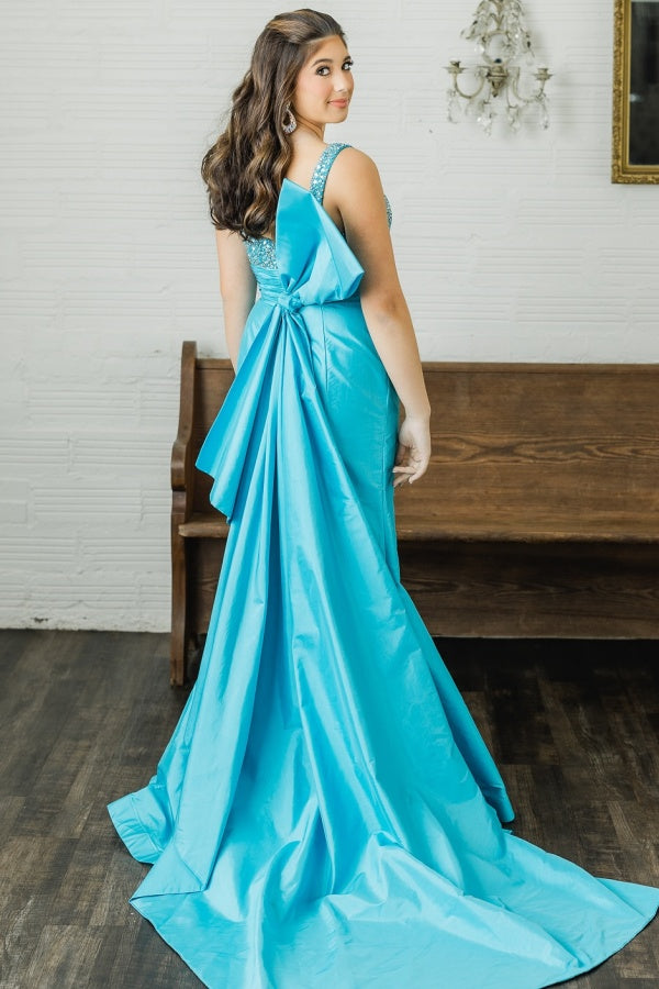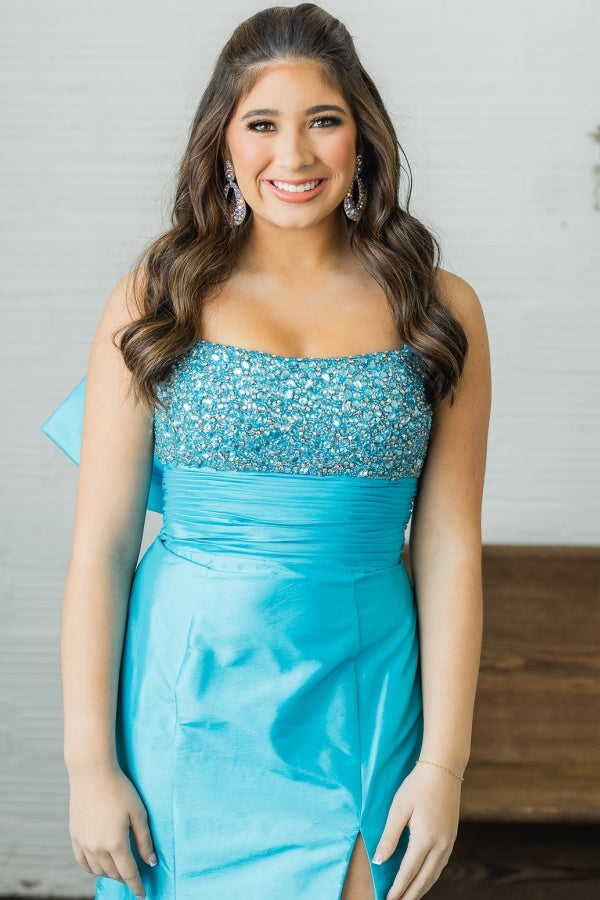 WU1130 - Wunderschönes schulterfreies ärmelloses Ball- und Partykleid mit Pailletten, hohem Seitenschlitz und Schleppe, Abendkleid, Cocktailkleid