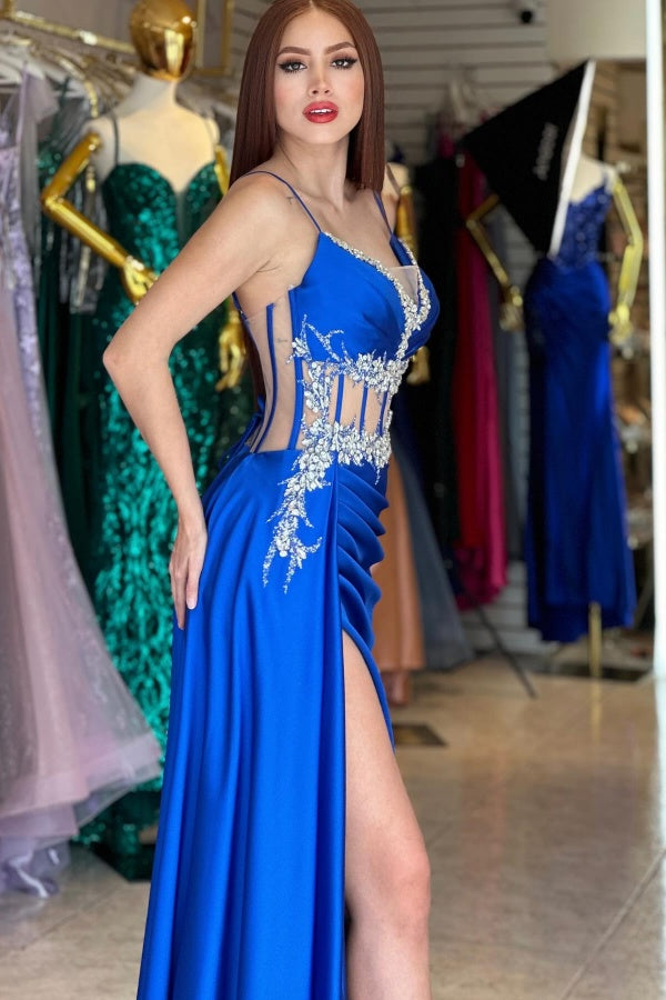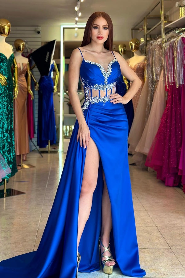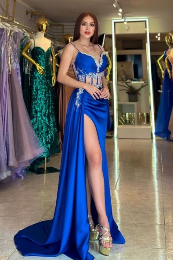 WU1051 - Elegantes und klassisches, trägerloses, ärmelloses Etuikleid mit plissiertem Kristall, formellem Ballkleid aus Satin, plissiert, hoher seitlicher Schlitz auf der Rückseite, Reißverschluss, Abendkleid, Brautkleid, Cocktailkleid