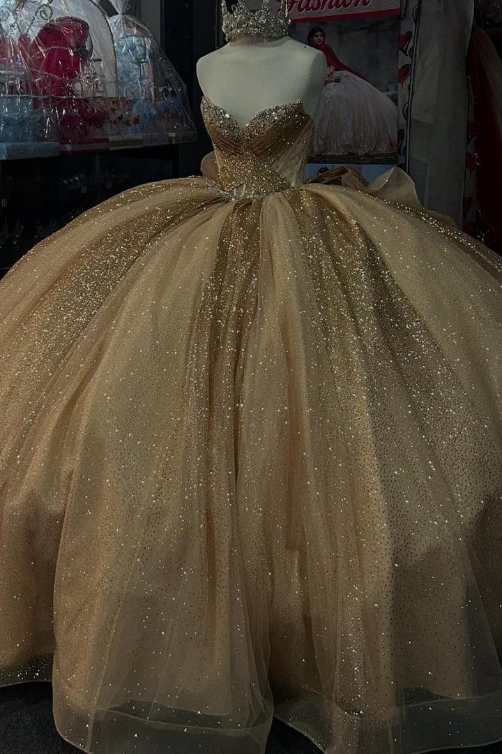 Langes Quinceanera-Kleid mit Herzausschnitt für Damen, trägerloses Korsett mit Blumenapplikationen, Perlenbesetztes Tüll-Ballkleid