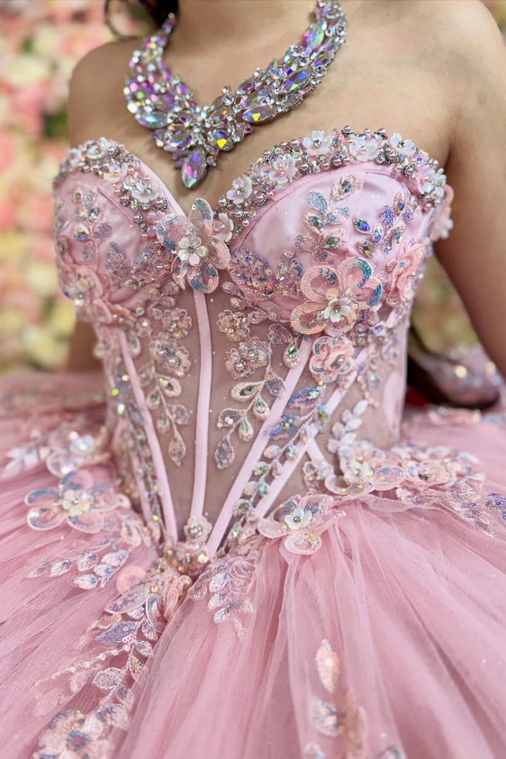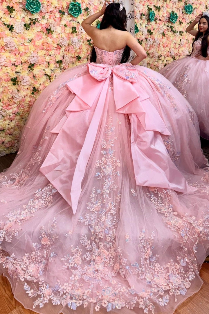 Description: Strapless Sleeveless Sequins Appliques Ruffles Bow Knot Pink Sweet 15 Quinceañera Dress WQ1741 Embrace pure romance in this breathtaking pink quinceañera dress that captures the essence of your Sweet 15 milestone. The strapless neckline creates an uninterrupted, elegant line across the shoulders while the sleeveless silhouette offers a contemporary edge. Shimmering sequins and intricate appliqués embellish the bodice and skirt, catching light beautifully as you move. Delicate ruffles add dimension and movement, while a charming bow knot detail provides a focal point of refined femininity. Expertly designed with meticulous craftsmanship, this gown ensures you'll radiate confidence and grace throughout your celebration, making unforgettable memories in timeless style.