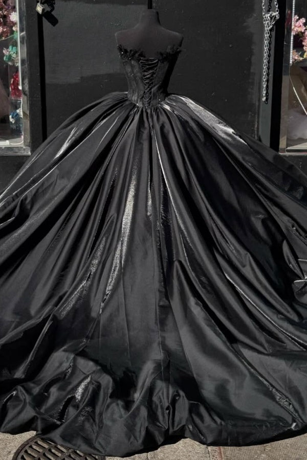 Langes Quinceanera-Kleid mit Herzausschnitt für Damen, trägerloses Korsett mit Blumenapplikationen, Perlenbesetztes Tüll-Ballkleid