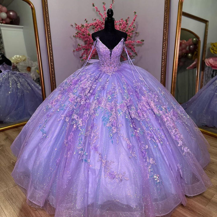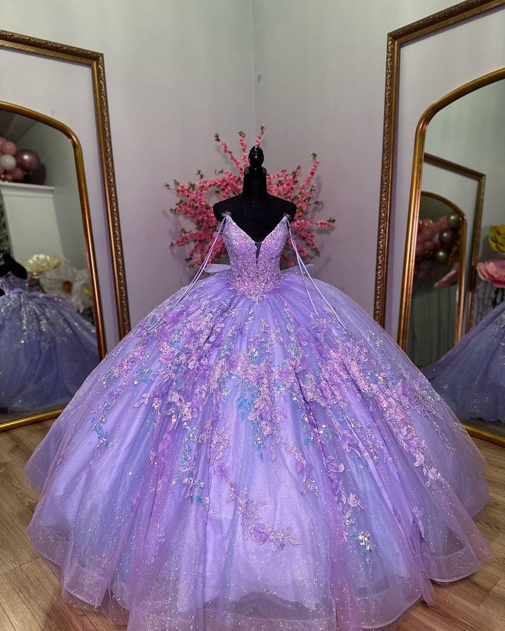 Lavendel Quinceanera Kleid Ballkleid 2024 Spitze Applikationen V-Ausschnitt Perlen Korsett Glitzer Tüll Schleife Sweet 16 Kleider Geburtstag Abschlussball Party Kleider