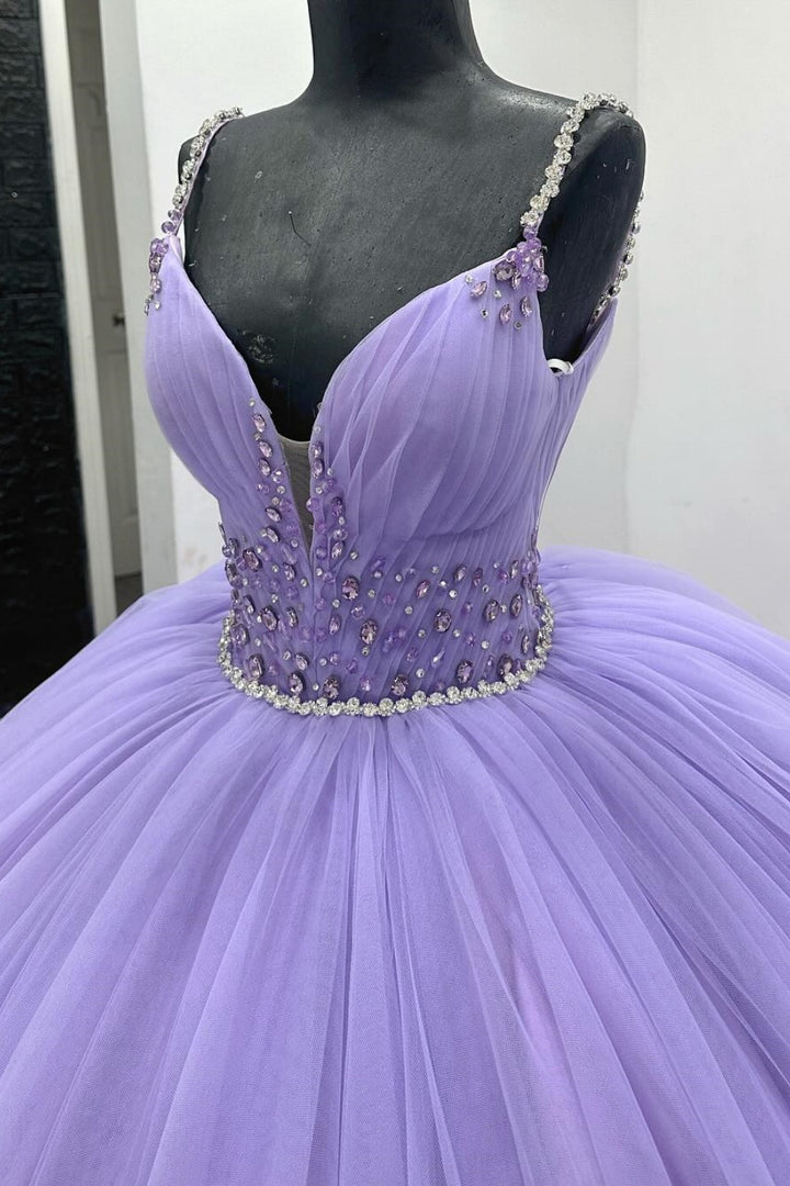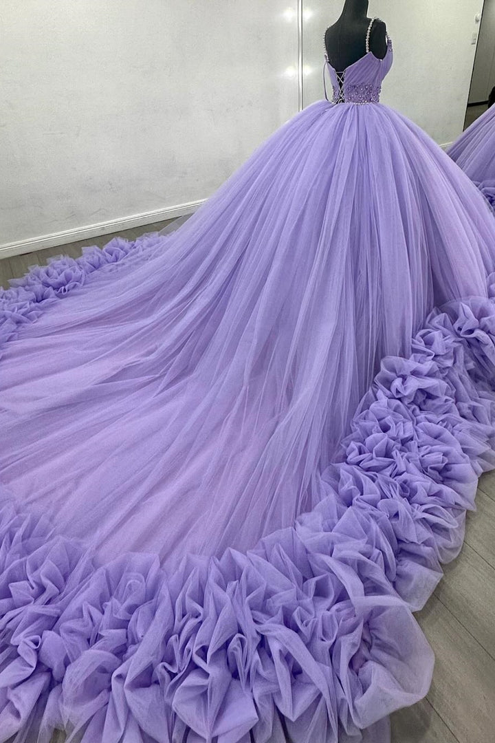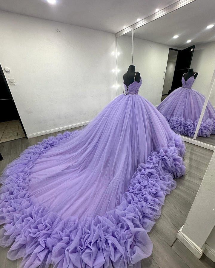 Langes Quinceanera-Kleid mit Herzausschnitt für Damen, trägerloses Korsett mit Blumenapplikationen, Perlenbesetztes Tüll-Ballkleid