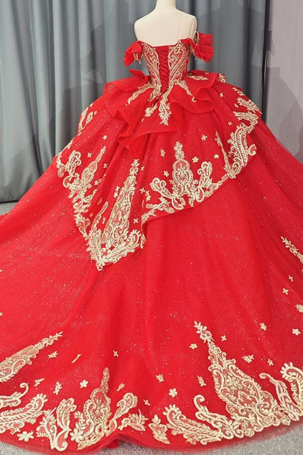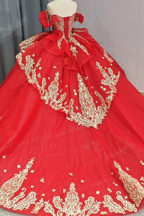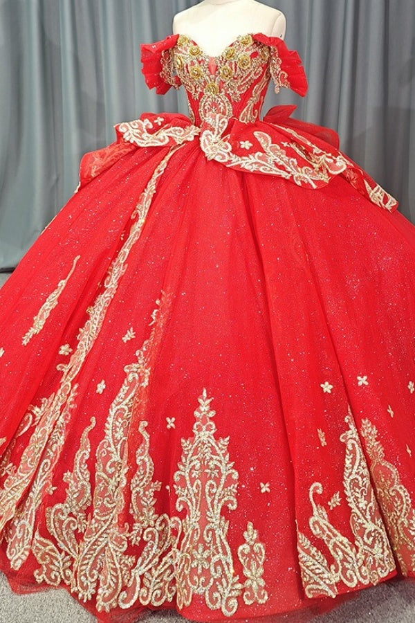 Langes Quinceanera-Kleid mit Herzausschnitt für Damen, trägerloses Korsett mit Blumenapplikationen, Perlenbesetztes Tüll-Ballkleid