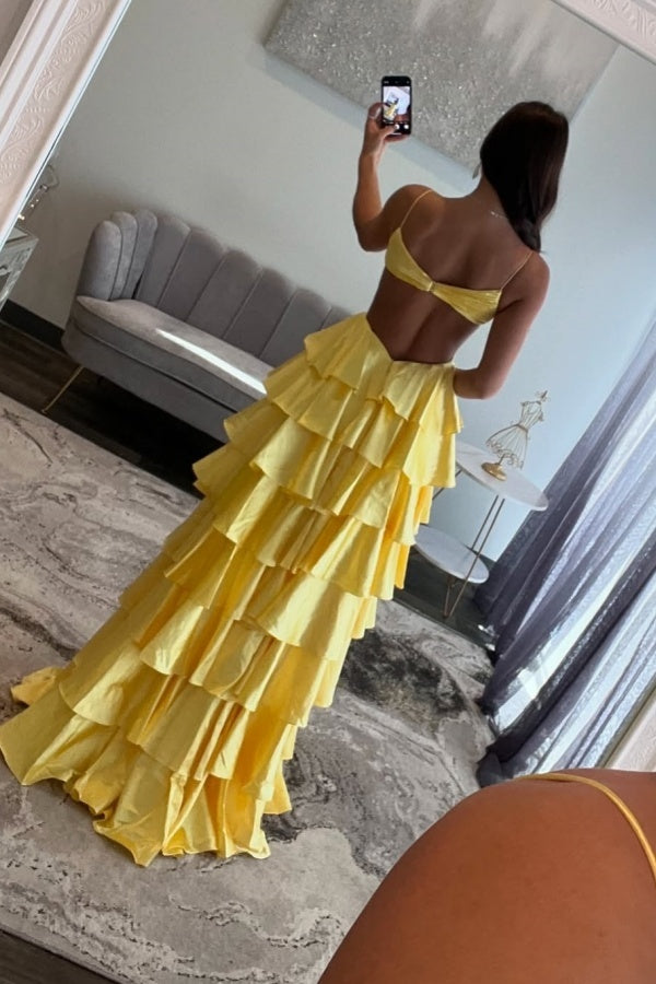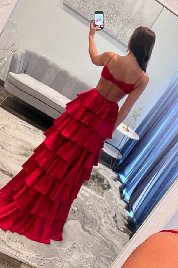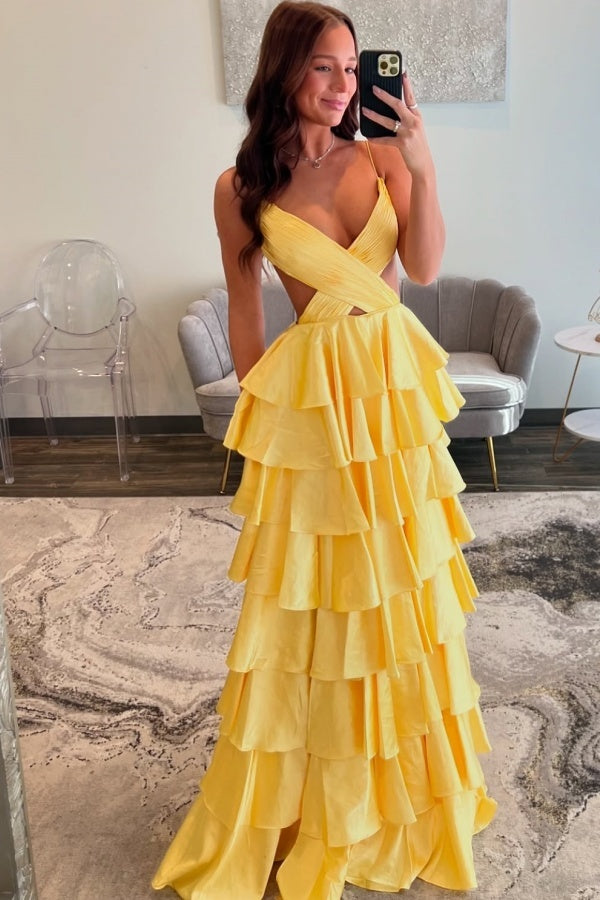 WU1120 - Schickes und modernes A-Linien-Kleid mit V-Ausschnitt, Spaghettiträgern, ärmellos, Ball- und Partykleid, plissiert, gestuftes Abendkleid mit Schlitz, formelles Kleid