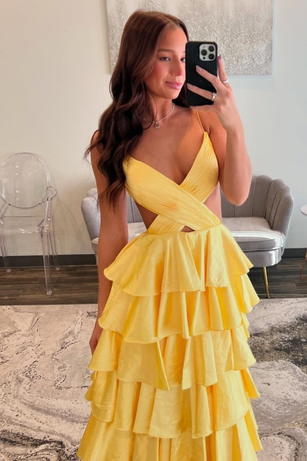 Werten Sie Ihren Stil mit WU1120 auf, unserem schicken und modernen A-Linien-Kleid mit V-Ausschnitt. Die Spaghettiträger und das ärmellose Design sorgen für eine atemberaubende Silhouette, während die plissierten, gestuften Details und der Seitenschlitz einen Hauch von Eleganz verleihen. Perfekt für Abschlussbälle, Partys oder formelle Veranstaltungen.