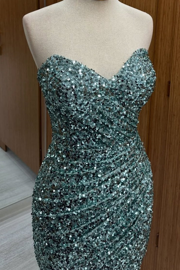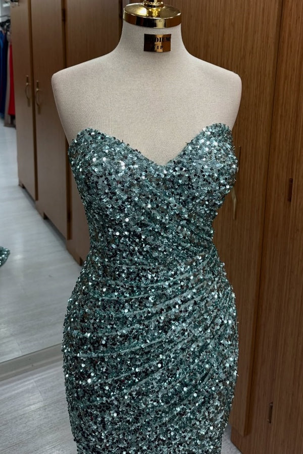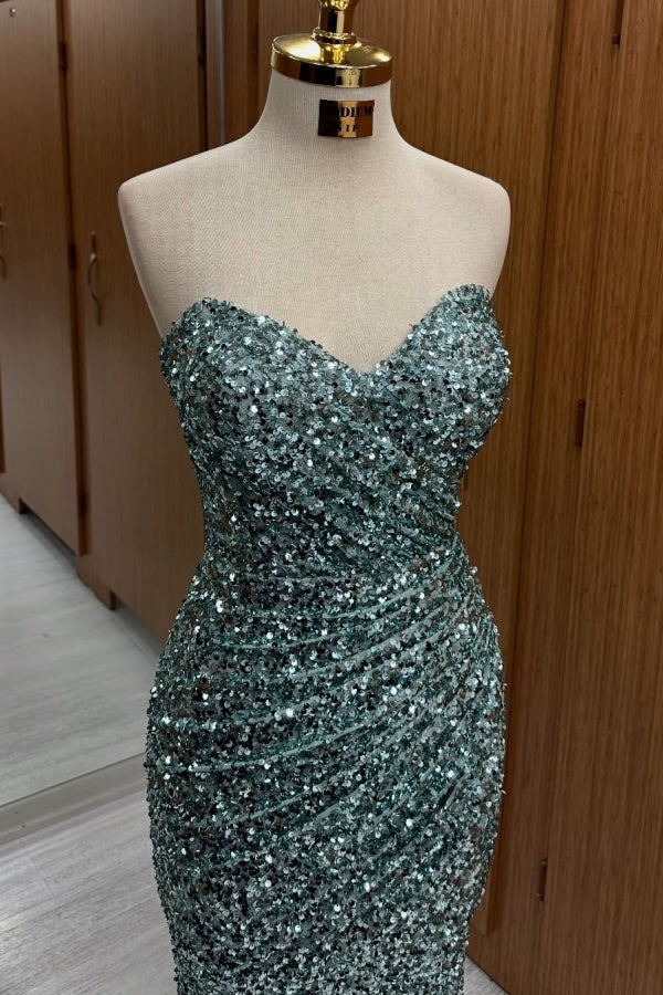 WU1130 - Wunderschönes schulterfreies ärmelloses Ball- und Partykleid mit Pailletten, hohem Seitenschlitz und Schleppe, Abendkleid, Cocktailkleid