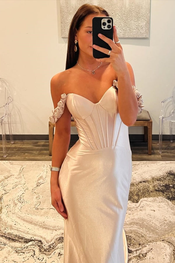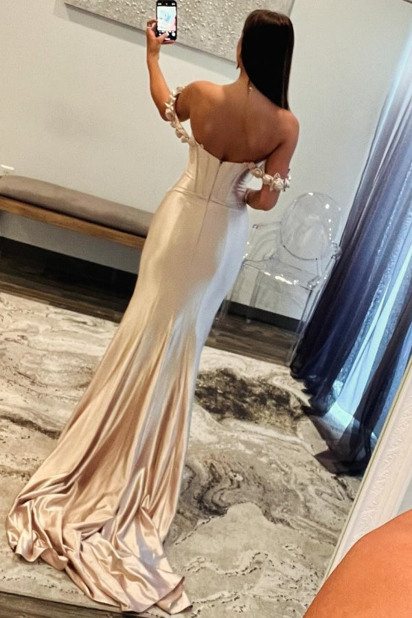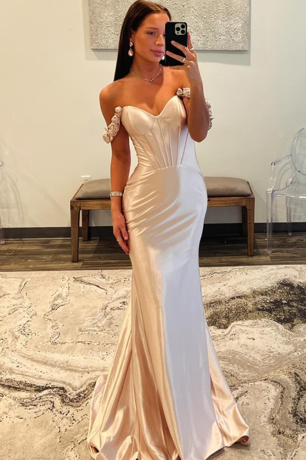 Descripción: Realza tu noche con nuestro vestido de corte sirena WU1320. Su diseño de hombros descubiertos y flores plisadas le dan un toque sofisticado, mientras que la cremallera trasera facilita un ajuste perfecto. Este vestido largo te hará sentir como una auténtica sirena en cualquier ocasión formal.