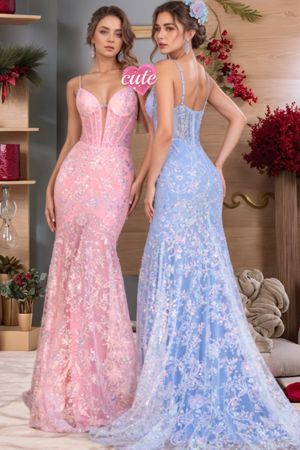 WU1139 - Vestido de fiesta de sirena, bonito e informal, con tirantes finos, apliques de lentejuelas, largo hasta el suelo, con cremallera en la espalda, vestido de noche y cóctel.