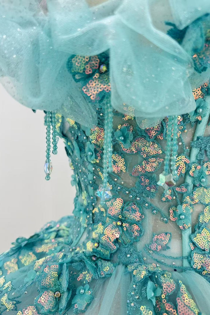 WQ1450 - Vestido de fiesta sin tirantes, sin mangas, con cuentas, volantes, lentejuelas, tul, capas, tul brillante, vestido de quinceañera, vestido de fiesta de cumpleaños, vestido formal de noche para dulces 16