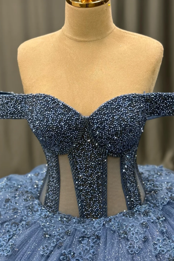 Descripción: Este deslumbrante vestido de quinceañera WQ1387 irradia lujo y elegancia. Su diseño sin mangas y hombros descubiertos, y su corpiño adornado con cuentas, crean una silueta sofisticada. La falda plisada y el tul azul brillante le dan un toque de glamour, mientras que la espalda con cordones garantiza un ajuste perfecto. Perfecto para cualquier evento formal de noche o una celebración de quinceañera.