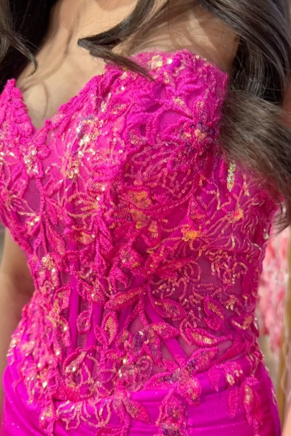 WU1381 - Vestido de noche formal, sexy, sin tirantes, plisado, con apliques de lentejuelas, abertura lateral alta y cola.