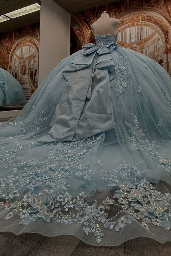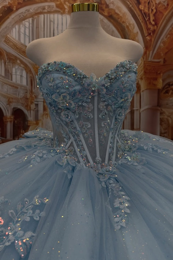 WQ1450 - Vestido de fiesta sin tirantes, sin mangas, con cuentas, volantes, lentejuelas, tul, capas, tul brillante, vestido de quinceañera, vestido de fiesta de cumpleaños, vestido formal de noche para dulces 16