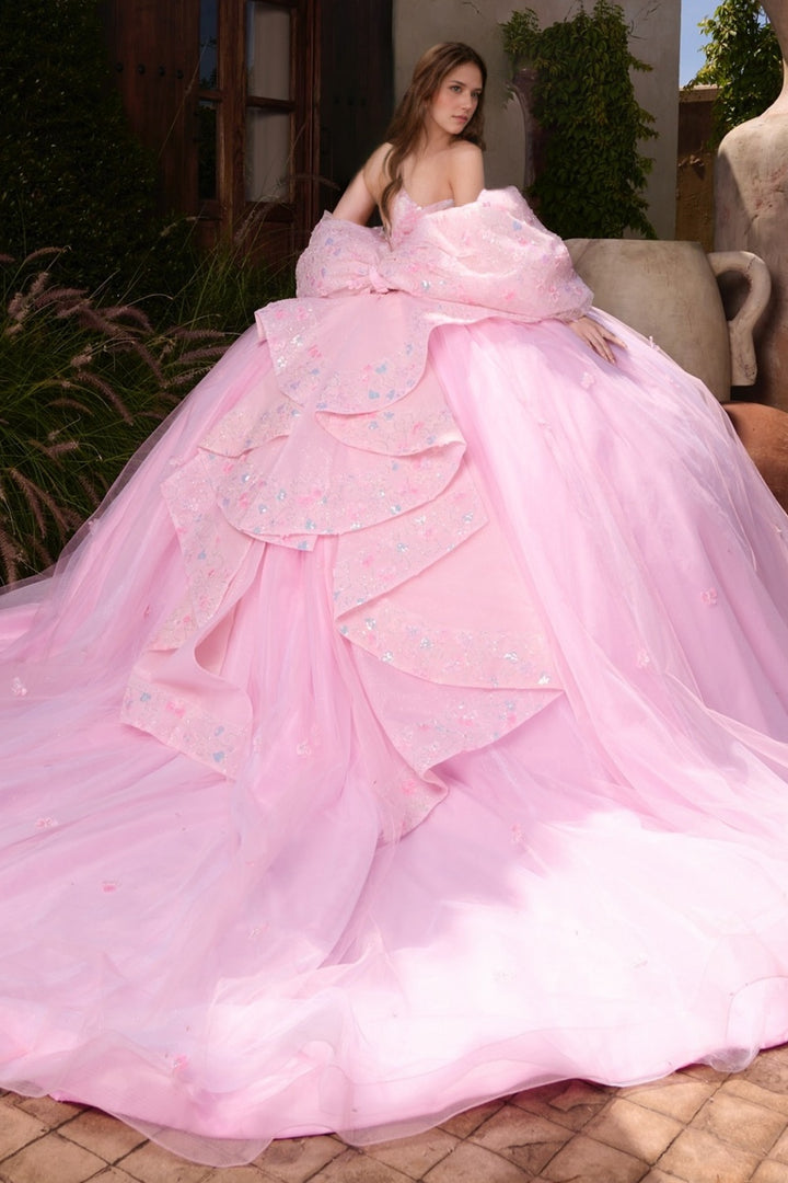 Description: Celebrate your quinceañera in timeless elegance with this stunning off-shoulder gown. Crafted with meticulous attention to detail, this dress features delicate beaded embellishments and dimensional 3D flower appliques that create a captivating focal point. The sleeveless silhouette showcases the shoulders beautifully, while cascading ruffles and an ornate bow knot detail add romantic movement and sophistication. The soft pink hue evokes grace and femininity, making this the perfect choice for your milestone celebration. This show-stopping design combines traditional quinceañera aesthetics with contemporary craftsmanship, ensuring you'll feel confident and radiant throughout your special day.