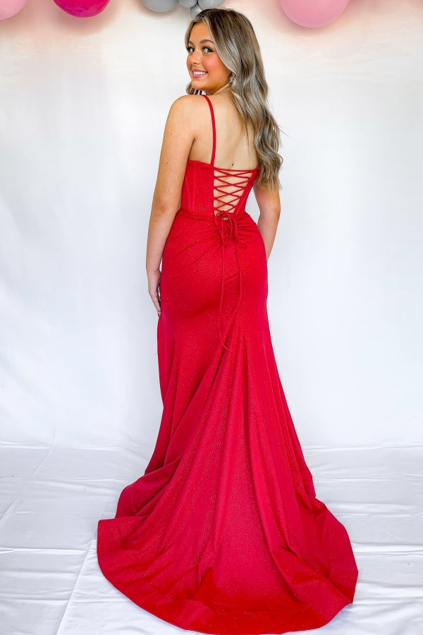 WU1443 - Vestido de fiesta de graduación, sexy y atractivo, sin mangas, con tirantes finos, plisado, abertura lateral alta y cola, vestido de noche formal.