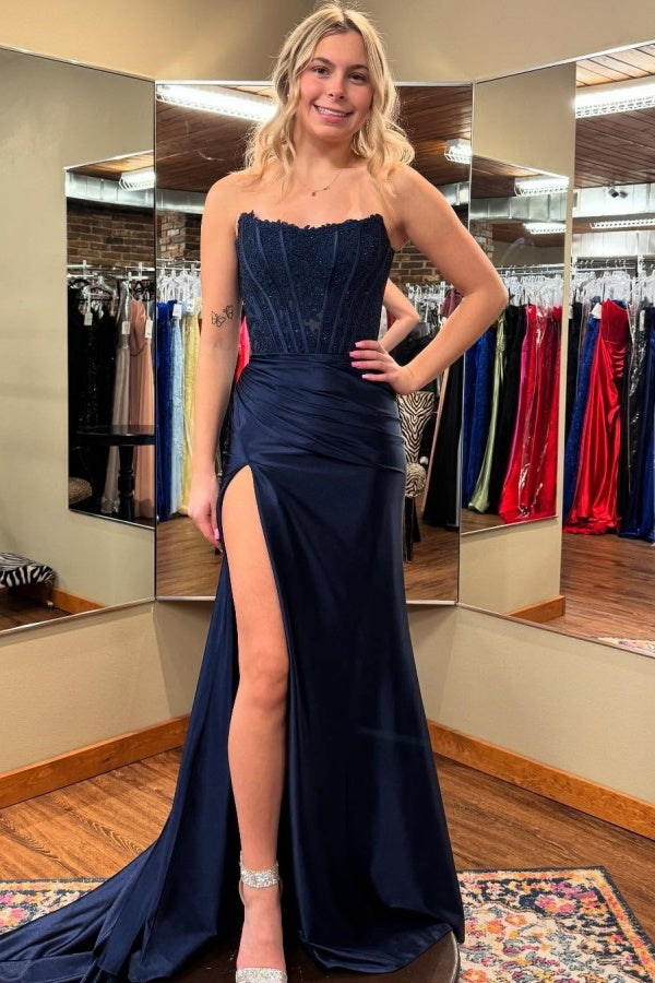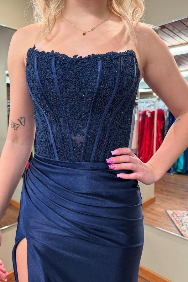 WU1207 - Hermoso vestido de fiesta plisado con tirantes finos, sin mangas, con apliques de encaje, largo hasta el suelo, para noche formal
